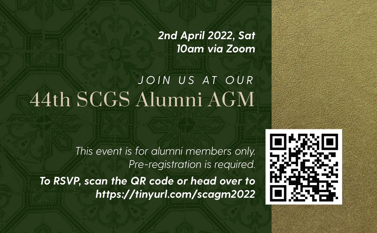 In light of the COVID-19 situation, the AGM will be conducted by electronic means. Please pre-register at https://tinyurl.com/scagm2022 by 30 March 2022 should you wish to attend the virtual AGM. Details of how you may access the virtual AGM will be provided to you thereafter. You may download the AGM documents here. (The documents are password protected. If you are on the alumni member, you would have received an email with the password. If you do not have that email, please get in touch with us.)